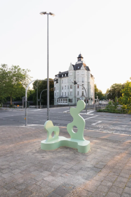 The sculptures highlight special locations along Kreativachse and can be used as a stage or a place to gather. Benches and parklets are scattered like breadcrumbs along the streets of Kreativachse, giving the place a colorful and unusual visual identity.